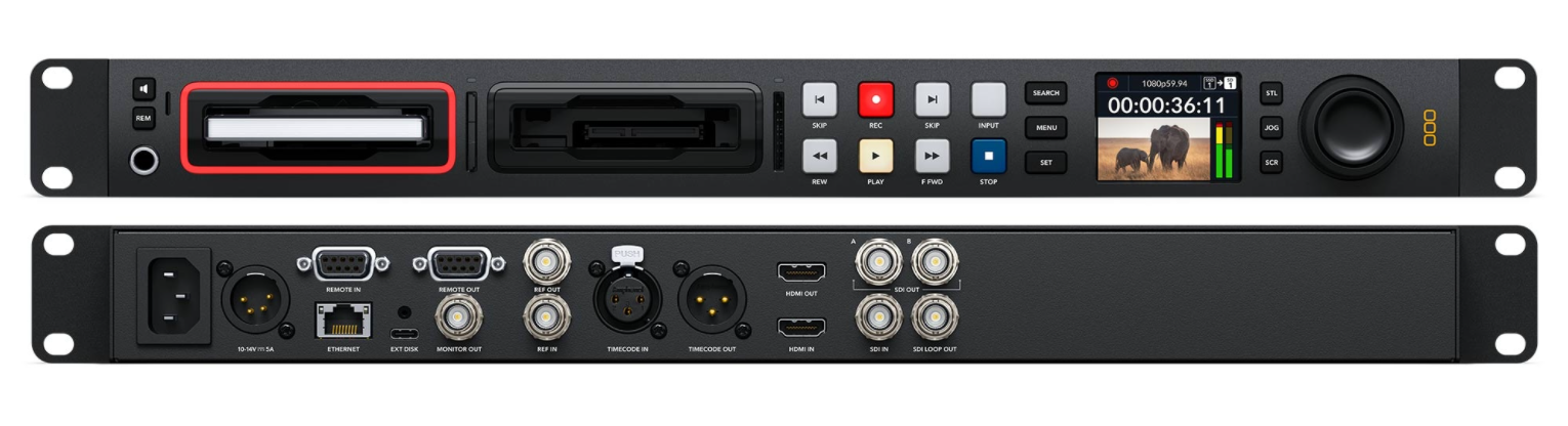 für Aufnahme und Wiedergabe von H.264-Dateien bis bis 1080p/60 und ProRes- oder DNxHD-Dateien in SD/HD-Formaten bis 2160p/30 auf SD/UHS-II-Karten oder externe USB-Laufwerke