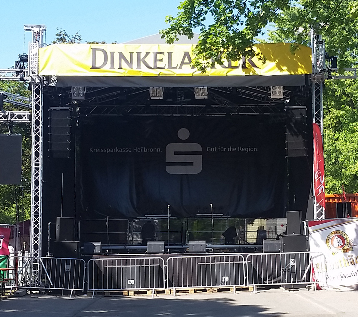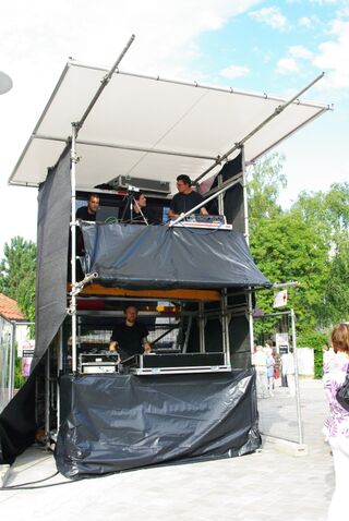 Bühne: Breite 10m, Tiefe: 8m, Höhe: 80cm – 130cm