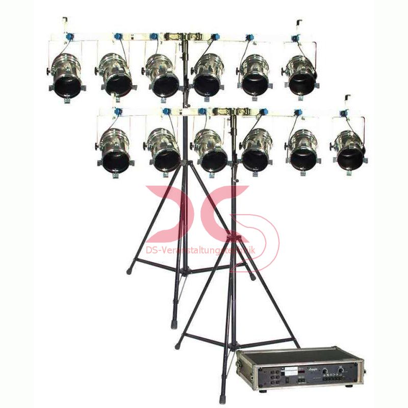 12 Strahler PAR 64 500W, verschiedene Farbfolien wählbar