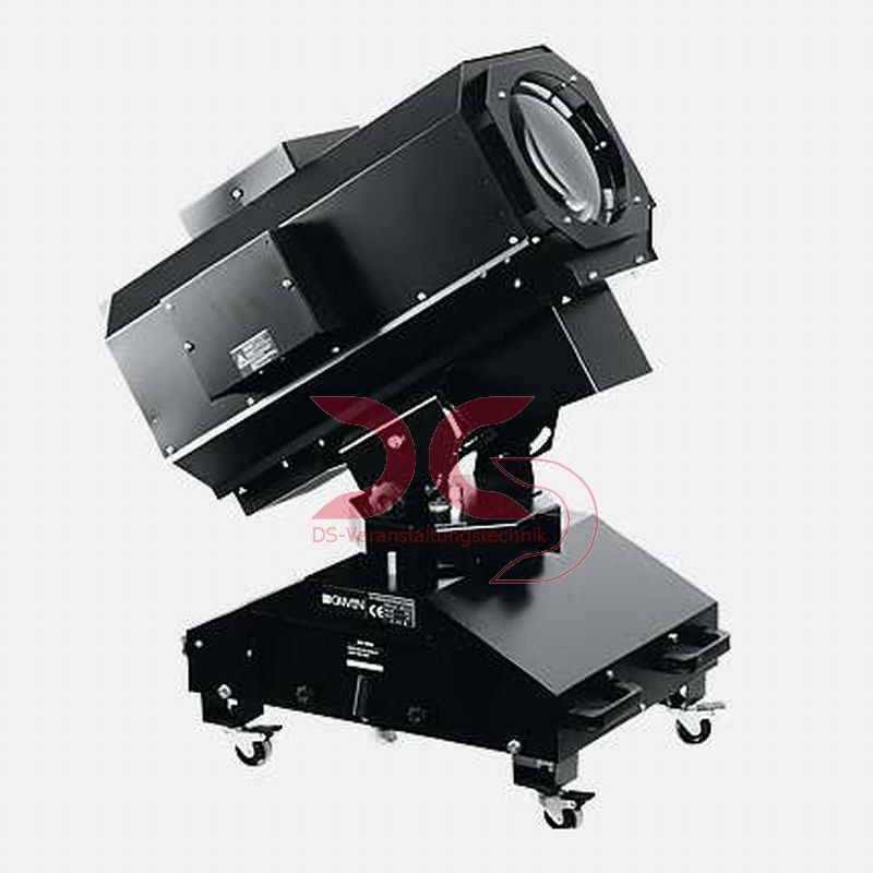 Motorisch bis zu 180° schwenkbar, projiziert drehend weiße Strahlen, DMX, sichtbar bis zu 6 km