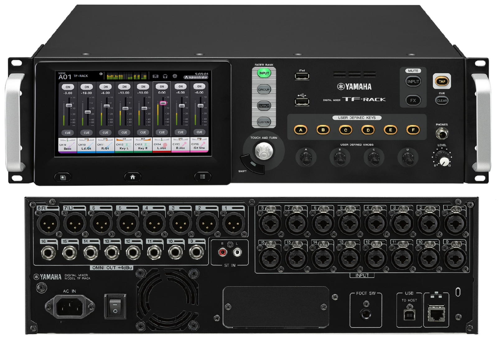 Inputs: 16 mic/line (XLR/TRS combo) + 1 stereo line (RCA pin)